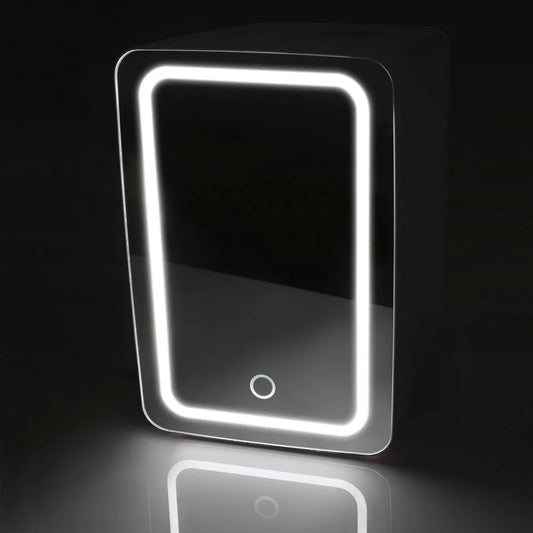 Mini Fridge Beverage Refrigerator Lighted Glass Door, 6L Capacity, Black, LED Lighted Mirror Door with on/off Touch Control