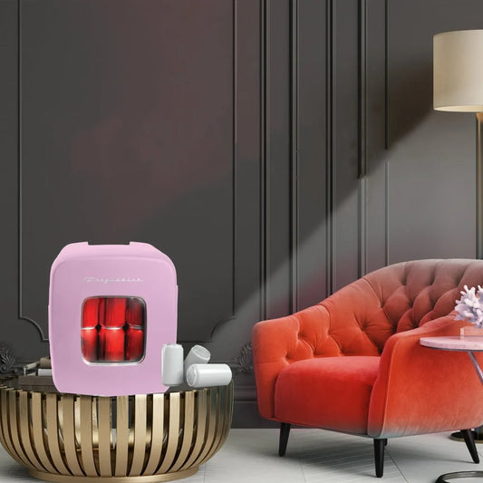 Pink Mini Portable Fridge, 4 litres Capacity Chills Six 12oz Cans, 100% Freon-Free & Eco Friendly, Beverage Cooler