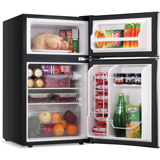 Mini refrigerator 3.2Cu Ft compact defrosting double door freezer for energy-saving storage of beverages, vegetables, and fruits