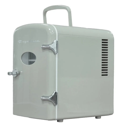 Retro 12 Can Mini Beverage/Skincare Cooler, Holds 12 Cans or 9 Liters, Thermoelectric Cooling System, White