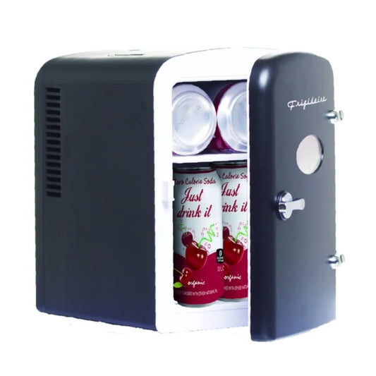 Retro 12 Can Mini Beverage/Skincare Cooler, Holds 12 Cans or 9 Liters, Thermoelectric Cooling System, Black