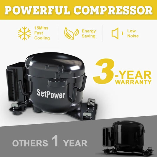 Our portable fridges maintain optimal temperatures ranging from -4°F to 68°F, ensuring your perishables stay fresh even in extreme weather conditions. The powerful compressors allow for rapid cooling, reaching desired temperatures quickly.