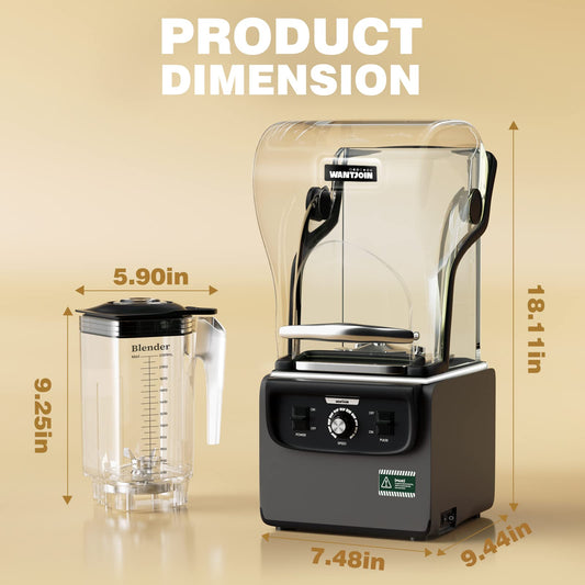 Wantjoin Professional Blender, Commercial Quiet blender Soundproof Blender 2200ml with Cover for Crushing Ice,Smoothie,Puree,Blender for Kitchen 1800W (Grey)