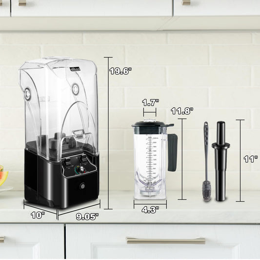Commercial Blender for Smoothies 2200W With Soundproof Cover, 2200 ML, 15 Speeds, 6-leaves Stainless Steel Blade, Heavy Duty Blender for Restaurant, Smoothie, Ice Crush, Shakes, 9.5"D x 9"W x 19.7"H