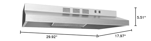 CIARRA Range Hood 30 inch Under Cabinet Ductless Vent Hood for Kitchen Stove Hood with 3 Speed Exhaust Fan in Stainless Steel