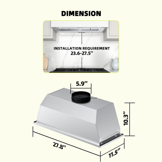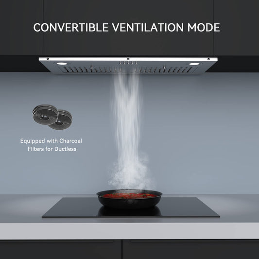 FIREGAS Range Hood Insert 30 inch, Built-in Kitchen Hood with 600 CFM, Ducted/Ductless Convertible Kitchen Vent Hood, Stainless Steel Stove Hood with Push Button, Baffle Filters and Charcoal Filters