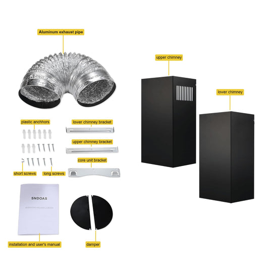 SNDOAS Range Hood 30 inch,Stainless Steel Wall Mount Range Hood 30 inch,Chimney-Style Stove Vent with Ducted/Ductless Convertible,Kitchen Hood with LED Light,Button Control,3-Speed Vent Hood