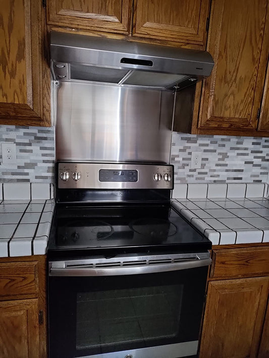 24" By 30" Stainless Steel Stove Backsplash Splatter Guard SP3604 Range Hood Backsplash Wall Shield Metal Panel, Ultra Flat Easy Clean And Install, 1 Year Sales Guarantee