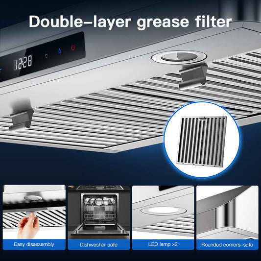 30 Inch Under Cabinet Range Hood with 900-CFM, 4 Speed Gesture Sensing&Touch Control Panel, Stainless Steel Kitchen Vent