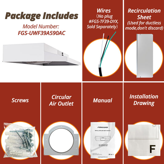 FIREGAS Range Hood 36 inch Under Cabinet, Ducted/Ductless Convertible Kitchen Hood, White Painted Stainless Steel Vent Hood with LED Light,2 Speed Exhaust Fan