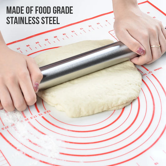 Smooth Stainless Steel Rolling Pin for Baking Fondant, Pizza, Pie, Pastry, Pasta, Dough, Cookies (12.8in)