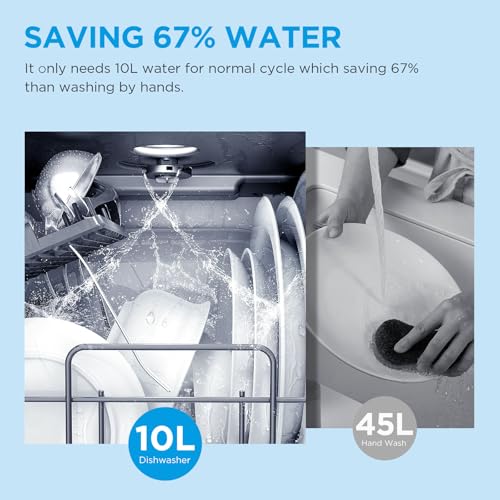 Contrary to popular belief, using a dishwasher can be more eco-friendly than hand-washing dishes. Portable countertop models typically use 4-5 liters of water per cycle, significantly less than washing by hand1. Many units also feature energy-efficient designs, helping you save on utility bills while reducing your environmental impact.