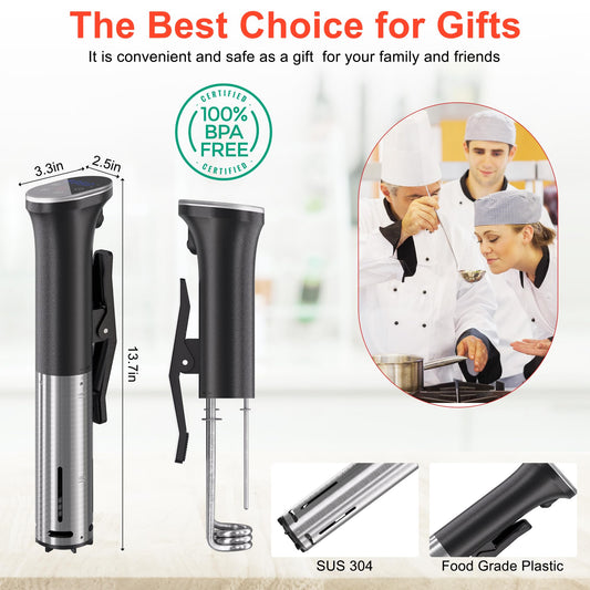 Outohomo Sous Vide Machine,1300 Watts, Immersion Circulators, Precision Cooker, Steak Cooker, Temperature and Time Digital Display Control, Ultra-Quiet,Fast-Heating,Easy to store,IPX7 Waterproof