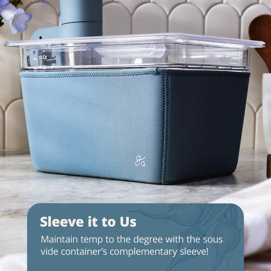 Greater Goods Pro Sous Vide Kit - An 1100 Watt, Powerful, Precise Sous Vide Cooker and Premium, Plastic Container with Sous Vide Rack, Lid, and Sleeve, Designed in St. Louis, (Stone Blue)