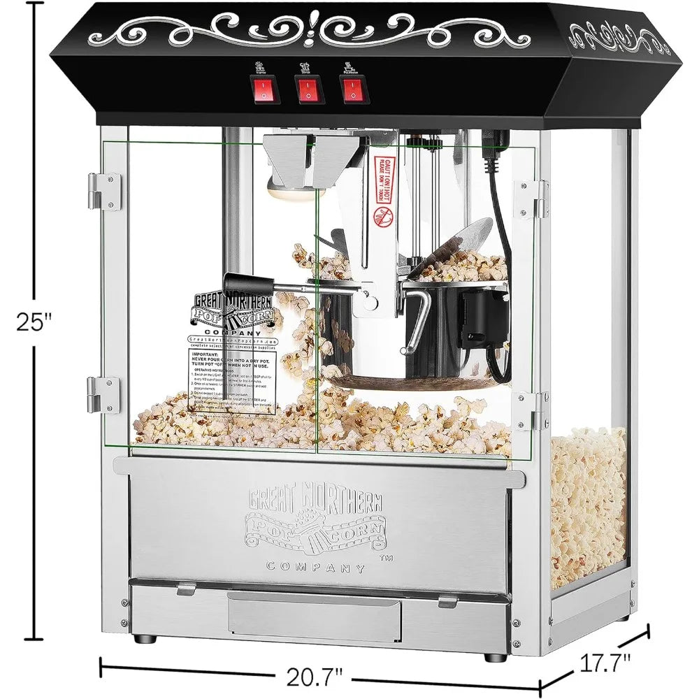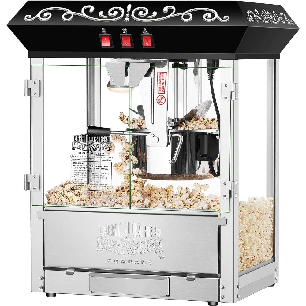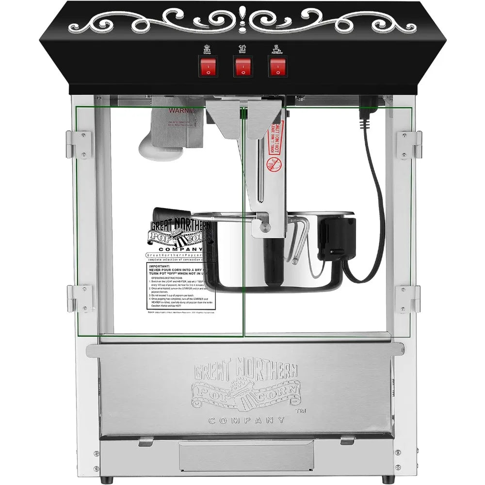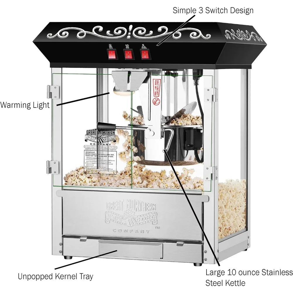 10 oz Countertop Style Popcorn Machine with 3 Control Switches, Built-in Warmer Light, Stainless-steel Construction, Black