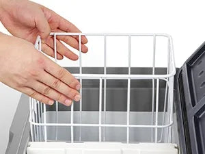 - 👍VALUE PACK AND FRIENDLY DESIGN:You will get a portable car fridge,1 cigarette lighter connector,1 wall plug,1 wall plug adapter,1 user manual,2 baskets.The built-in LED light design let you easily to get things at night.The bottom drain hole is convenient for cleaning the 12 volt refrigerators.Our cooler for cars also includes USB charging port,our RV refrigerator 12v has portable stretchable handles and off-road wheels which increase its portability.It's perfect for outdoor activities