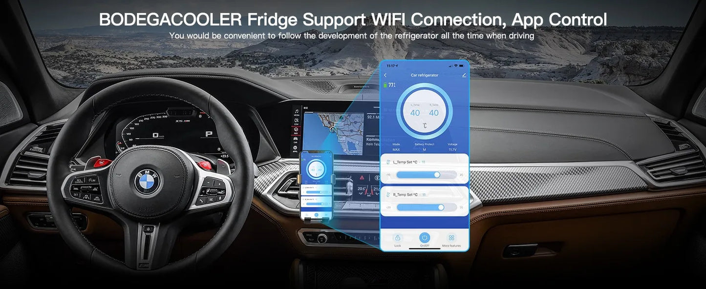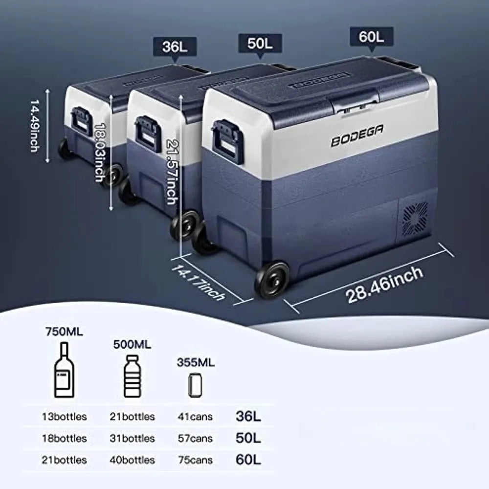 - 👍DUAL ZONE AND APP CONTROL CAR FRIDGE:12Volt refrigerator is equipped with two zone,the two zones can be independently controlled for temperature 36L(38 Quart).If you want only one zone,you can take off the middle plate.This powerful rv fridge can hold 41cans cola,or 21 bottles water or 13 bottles red wine.It's up to you to decide which side to use as the freezer or fridge zone.Our car refrigerator support WIFI connection, App control.(For android and ios)