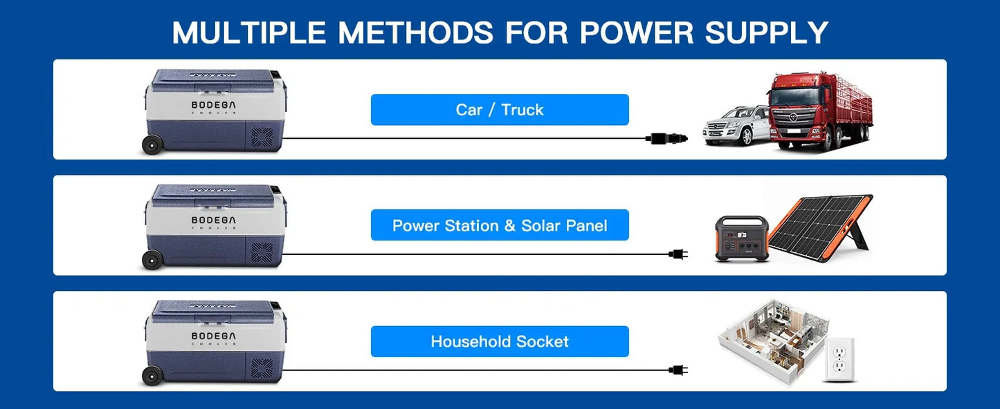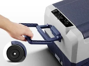 Car fridge is perfect for outdoor activities.The stretchable handle and off-road wheels increase its portability
