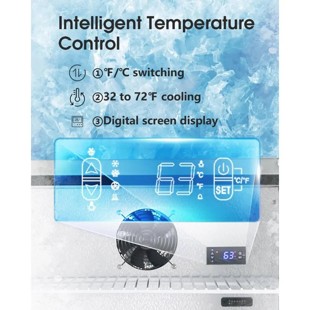 〔 Precise Temperature Control 〕Kitchen refrigerator powerful and highly efficient compressor-based cooling system utilizes environmentally friendly R600a refrigerant, offering an effective temperature range from 32°F to 72°F. HCK Beverage Fridge ensures constant monitoring of temperature through built-in sensors, maintaining your favorite beverages in optimal condition and ready to serve at your convenience. Most importantly, the press button controller with a blue-colored LED display allows for easy adjustment of the temperature setting.