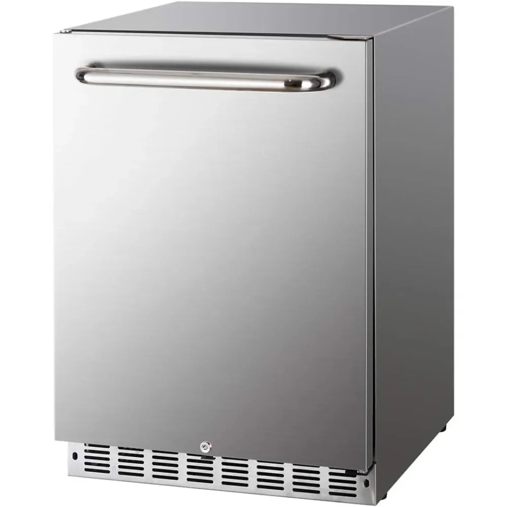 24 inch countertop refrigerator, weather resistant outdoor, stainless steel body, with reversible doors, lockable design