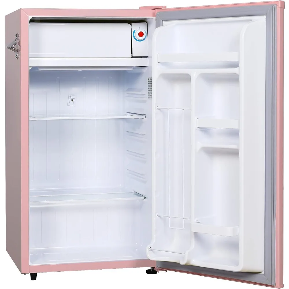 3.2 Cu Ft White Retro Bar Fridge, with Side Bottle Opener, Household Mini Refrigerator, Small Portable, Easy to Place