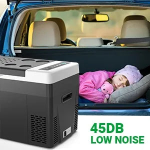 45 dB Low Noise The noise of the car refrigerator is 45dB when the test distance is one meter. With a 45dB low noise level, it will not interfere with sleep and driving. This 20-qt fridge will fit snugly in your room, behind a car seat, or in the bed of a truck. |
