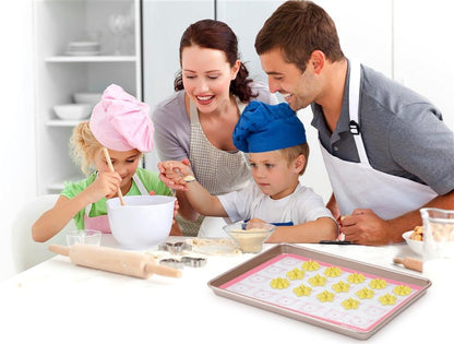 - VERSATILITY- Bake anything on silicone mats for baking sheets! Popular recipes include hot sugar cookies, peanut butter candy bars, cookie dough brownies, rum-scented marble cake, red velvet chocolate chip cookies, croissants, bread, pizza, black forest and pink sugar cookies, macaroons, meringues, fish, meats, garlic chicken, poultry, and vegetables.
