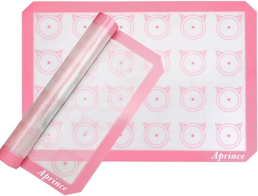 Aprince 2 Pack of Silicone Baking Mats Silicone Pastry Mat,Non-stick Baking Mat Pink 16.5x11.8x0.09 inch Silicone Mat Silicon Baking Mat Set Baking Mats Silicon Mats for Baking mats non stick silicone
