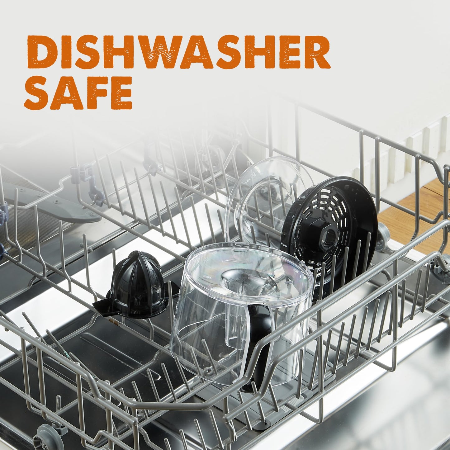 - 24 OUNCE SERVING SIZE: The 24oz (3 cup) capacity is perfect for 2-3 servings of fresh healthy citrus juice, with a convenient pouring spout and handle built right into the juicing container with a strainer/pulp/seed collector. All detachable parts are dishwasher safe.
