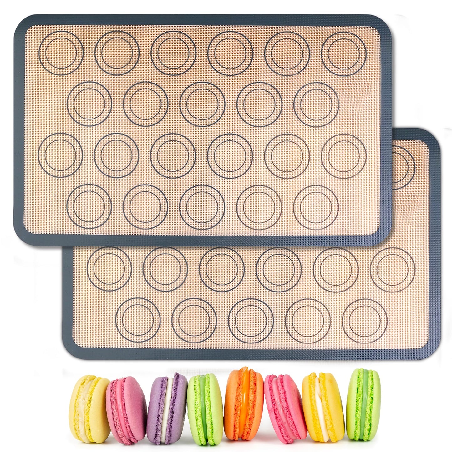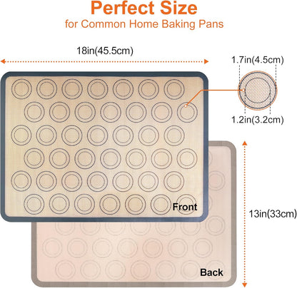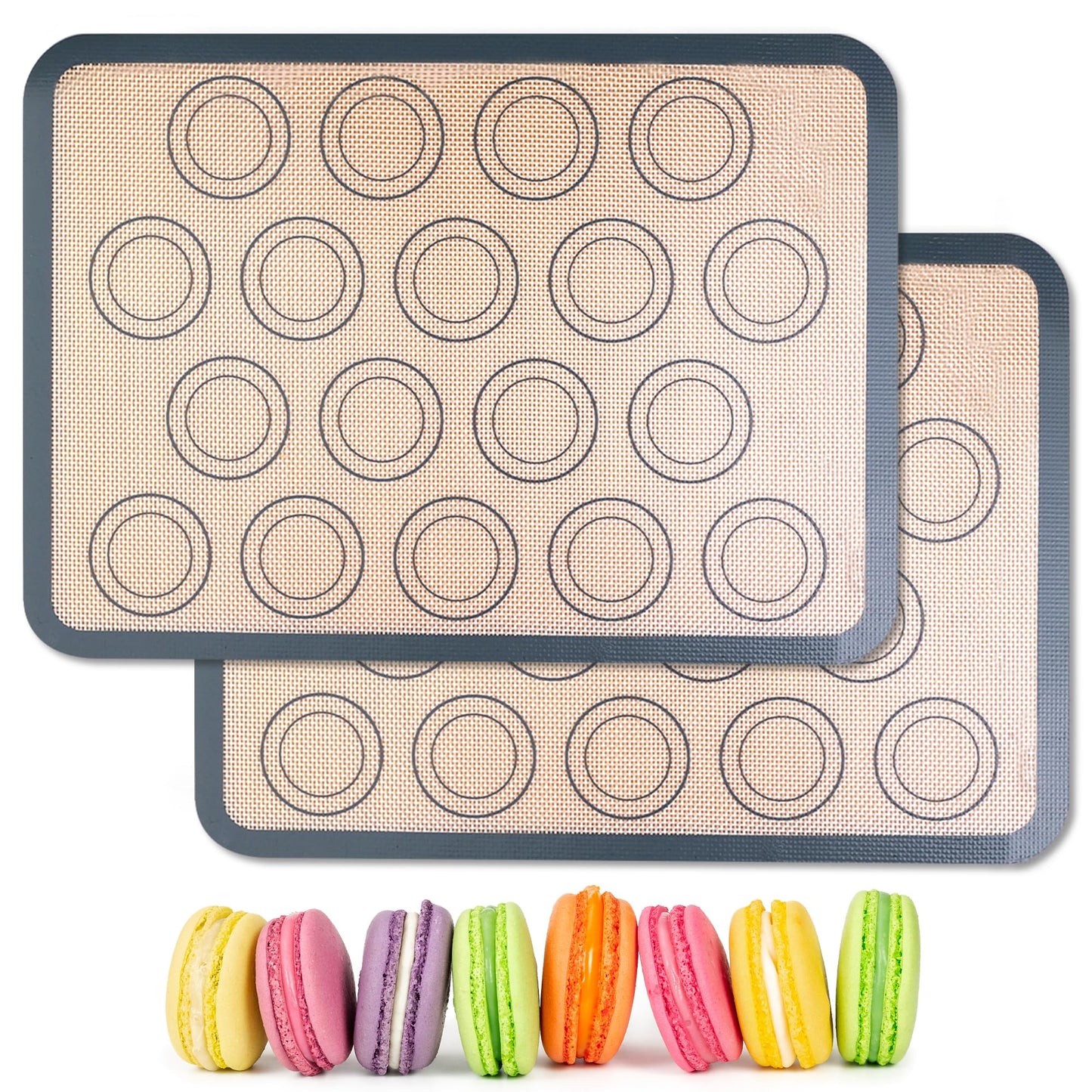 HOOMIL Macaron Silicone Baking Mats 2-Pack, 18" x 13" Commercial Half Sheet Size Macaron Silicone Mat, Non-Stick, Reusable, Food Safe Baking Mat - Brown+Gray