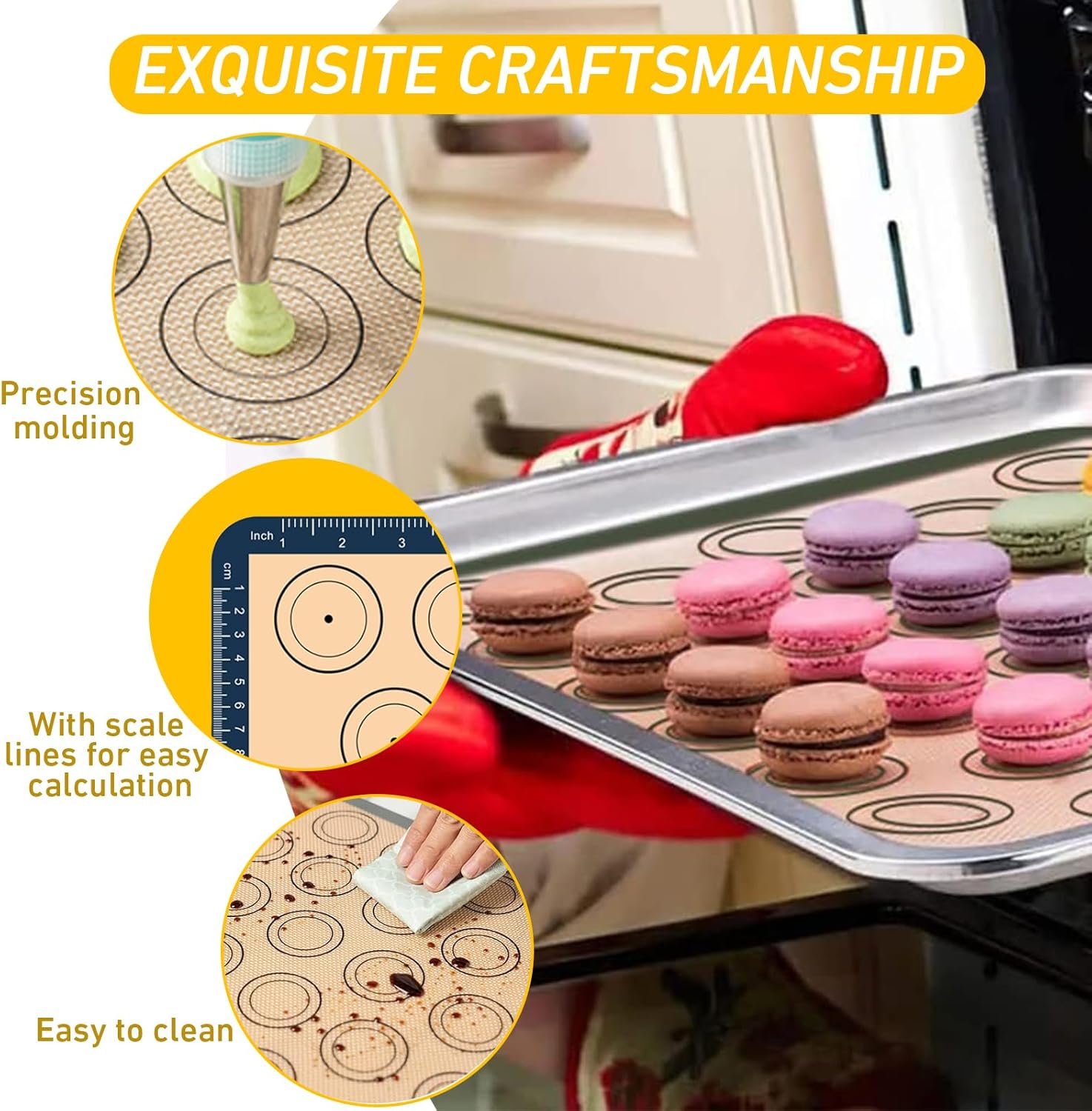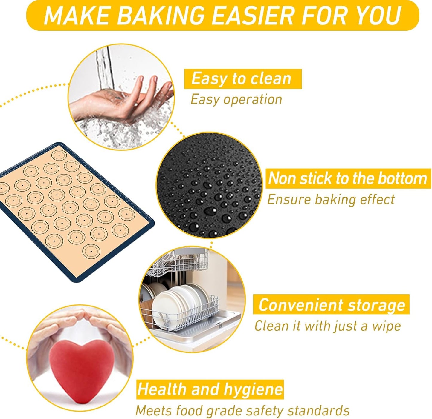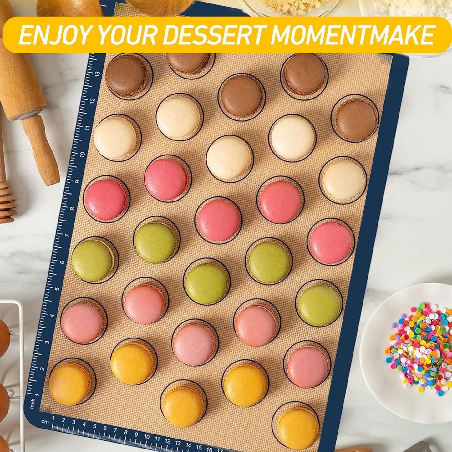 - [Macaron Baking Mat]: Heat-resistant to 480°F. Always place macaron baking mat on baking tray—never directly on oven rack. Ideal for stable, even baking.