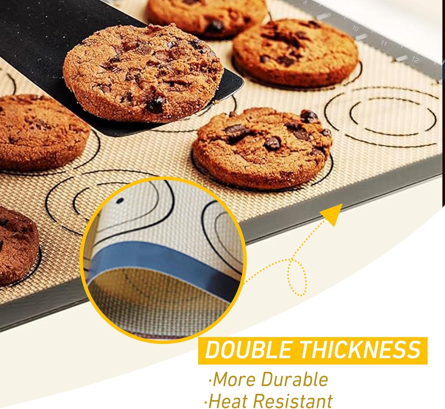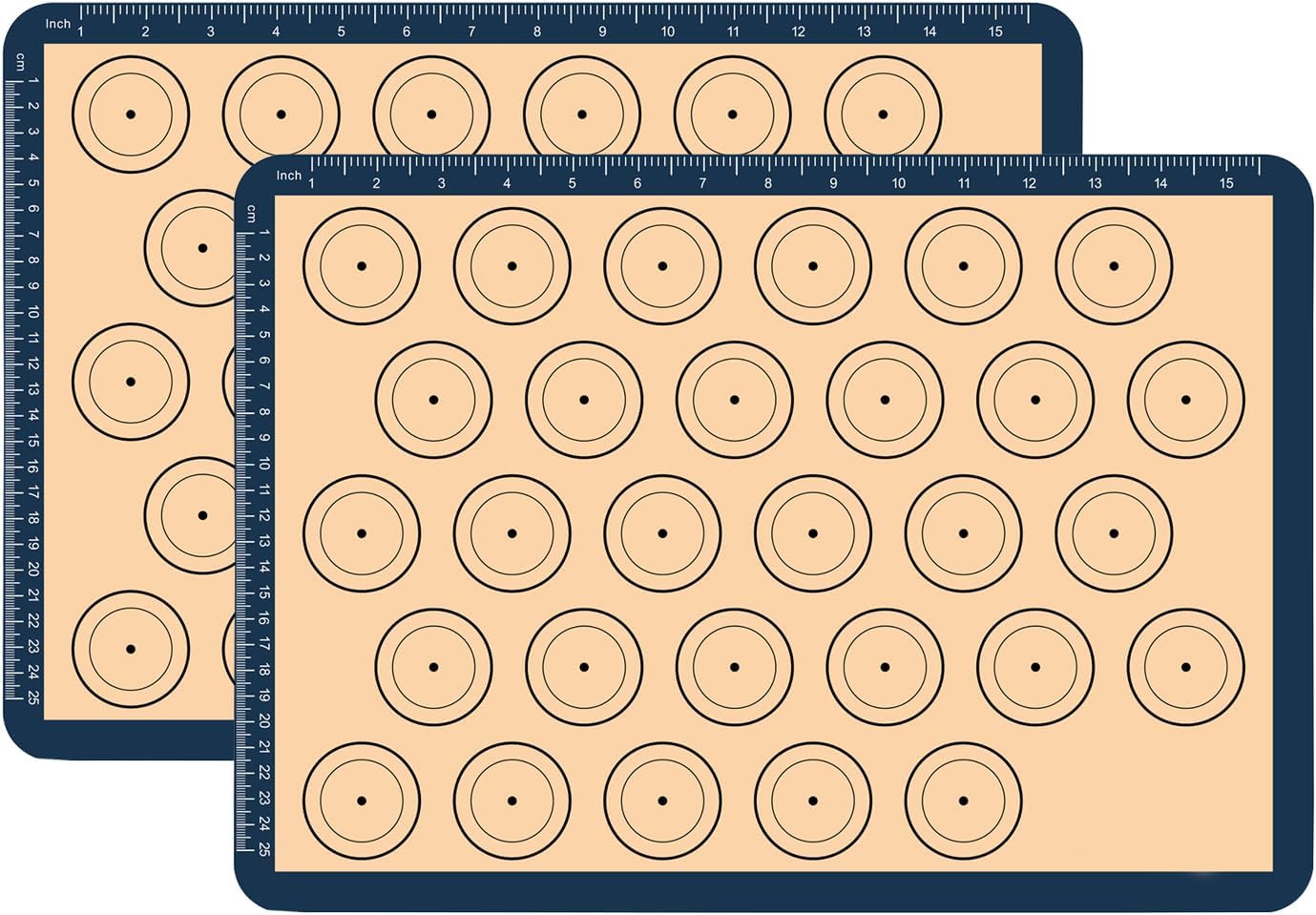 - [Macaron Baking Essentials]: Macaron silicone baking mats (2-pack) feature non-stick templates for 29 macaron halves per mat. Reusable, oven-safe, and dishwasher-friendly for flawless, evenly spaced treats every time.