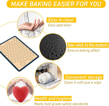 - [Safe-Baking Companion]: Food-safe macaroon mat silicone sheets withstand endless reuse, blending durability with effortless cleanup for flawless desserts. Ideal for eco-conscious kitchens.