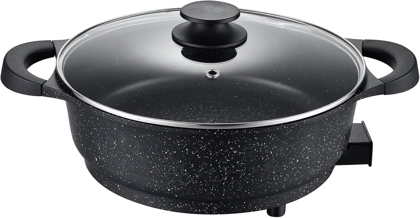 - Durable, Advanced Non-Stick Coating: Nonstick Electric Wok made of high-quality aluminum body to withstand constant heat and daily use. Marble non-stick coating, more durable than normal non-stick coating, is designed to prevent food from sticking and help speed up cleaning. PFOA-free and BPA-free, allowing for less oil or even oil-free cooking. Protect your healthy diet