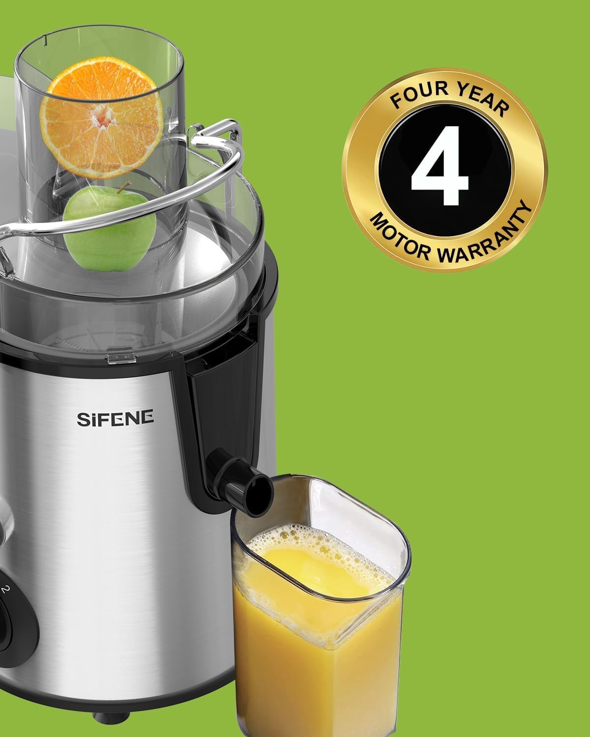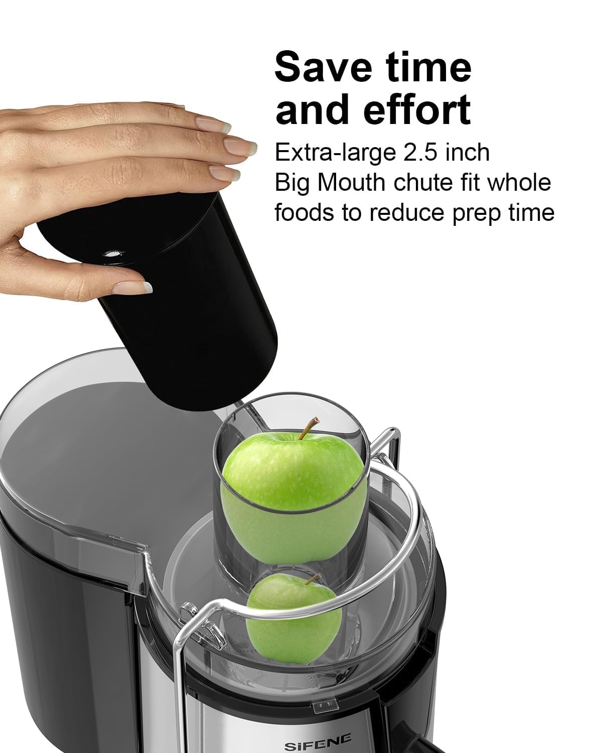 SiFENE Juicer Machines, Big Mouth Large 3” Feed Chute for Whole Fruits and Vegetables, Centrifugal Extractor, Easy to Clean, Non-BPA, Silver