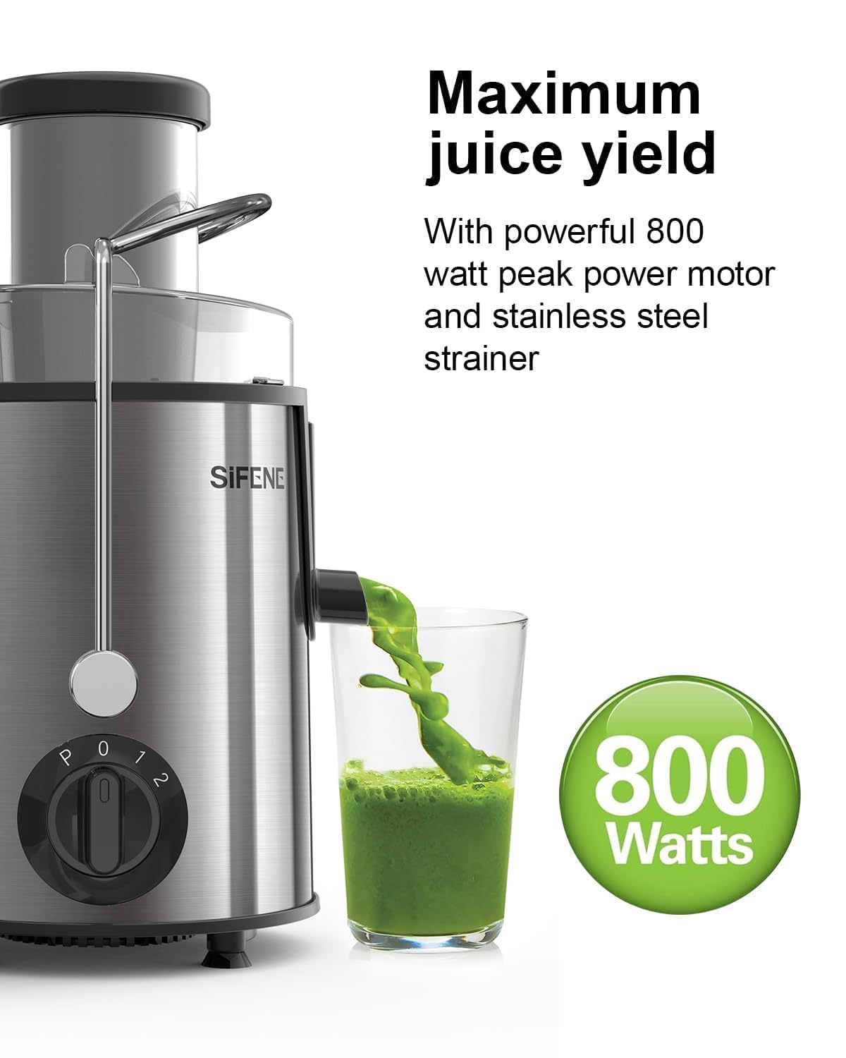 - Maximum Juice Yield: With its powerful 800-watt motor, this juicer extracts juice from a variety of produce - apples, celery, beets, leafy greens - ensuring less waste and more flavor.