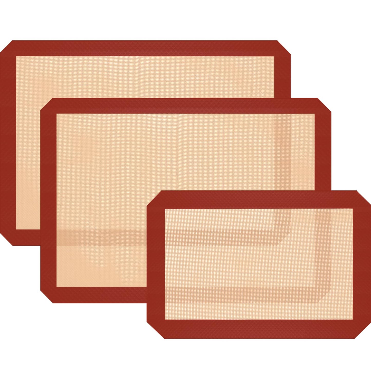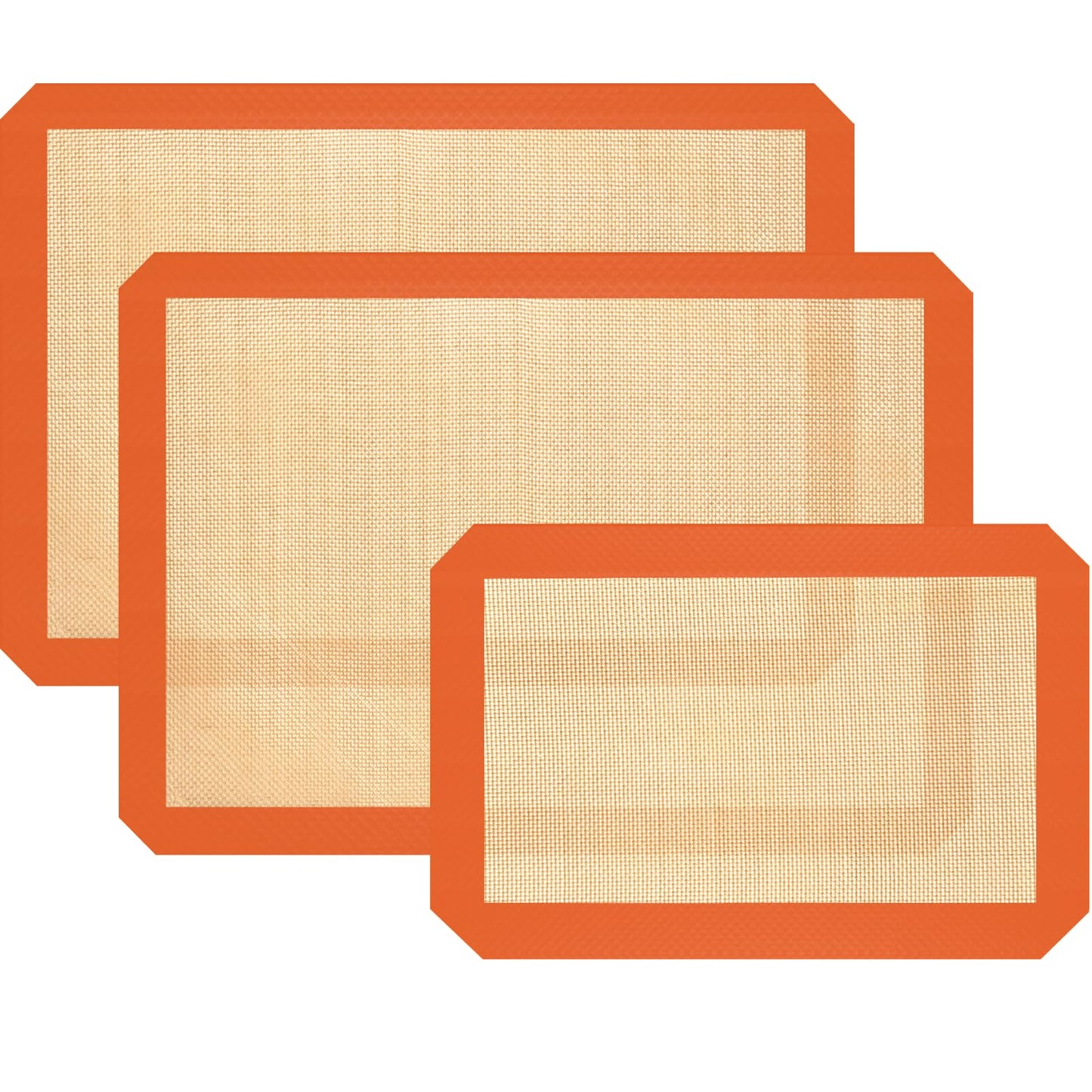 - [ MULTI-PURPOSE BAKING SET ] Silicone mat for baking set includes 2 half sheet baking mats (16.53 x 11.61in) and 1 quarter baking mat (11.81 x 8.26in). Silicone baking mats are great for macarons, pastries, cookies, breads, vegetables and meats. Make them a good helper for your cooking.