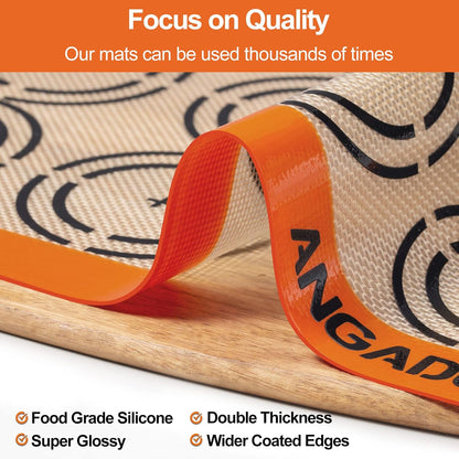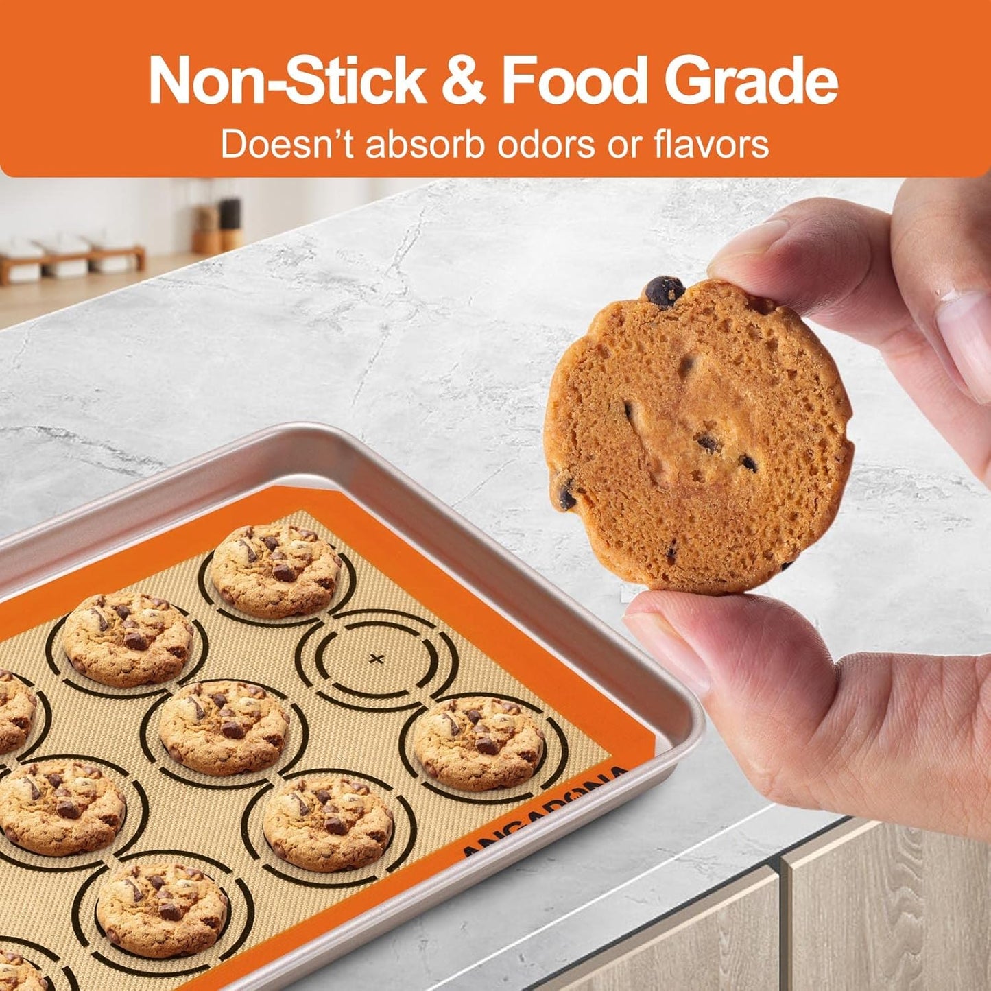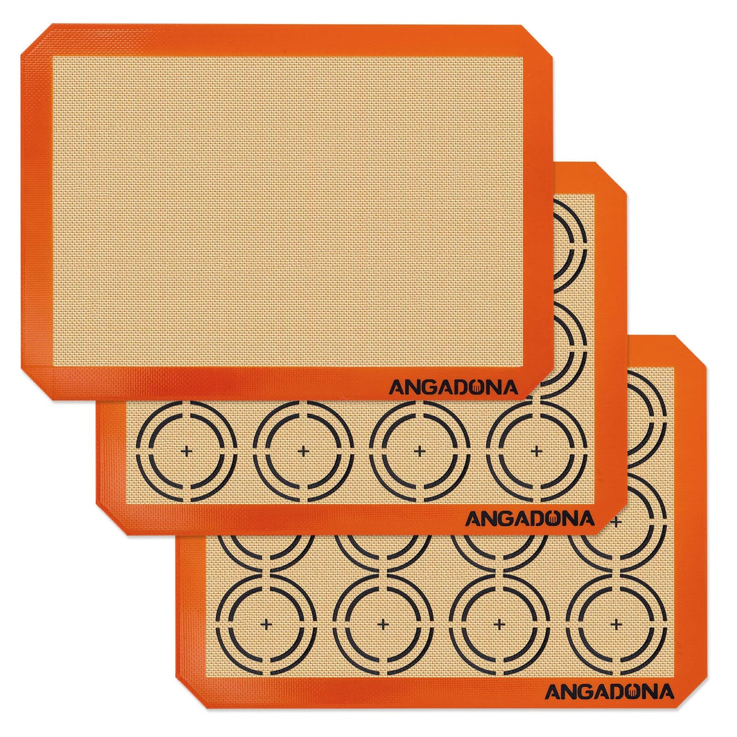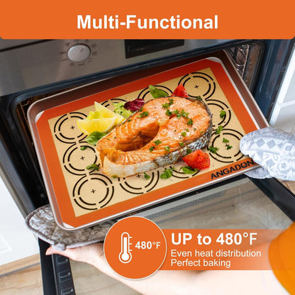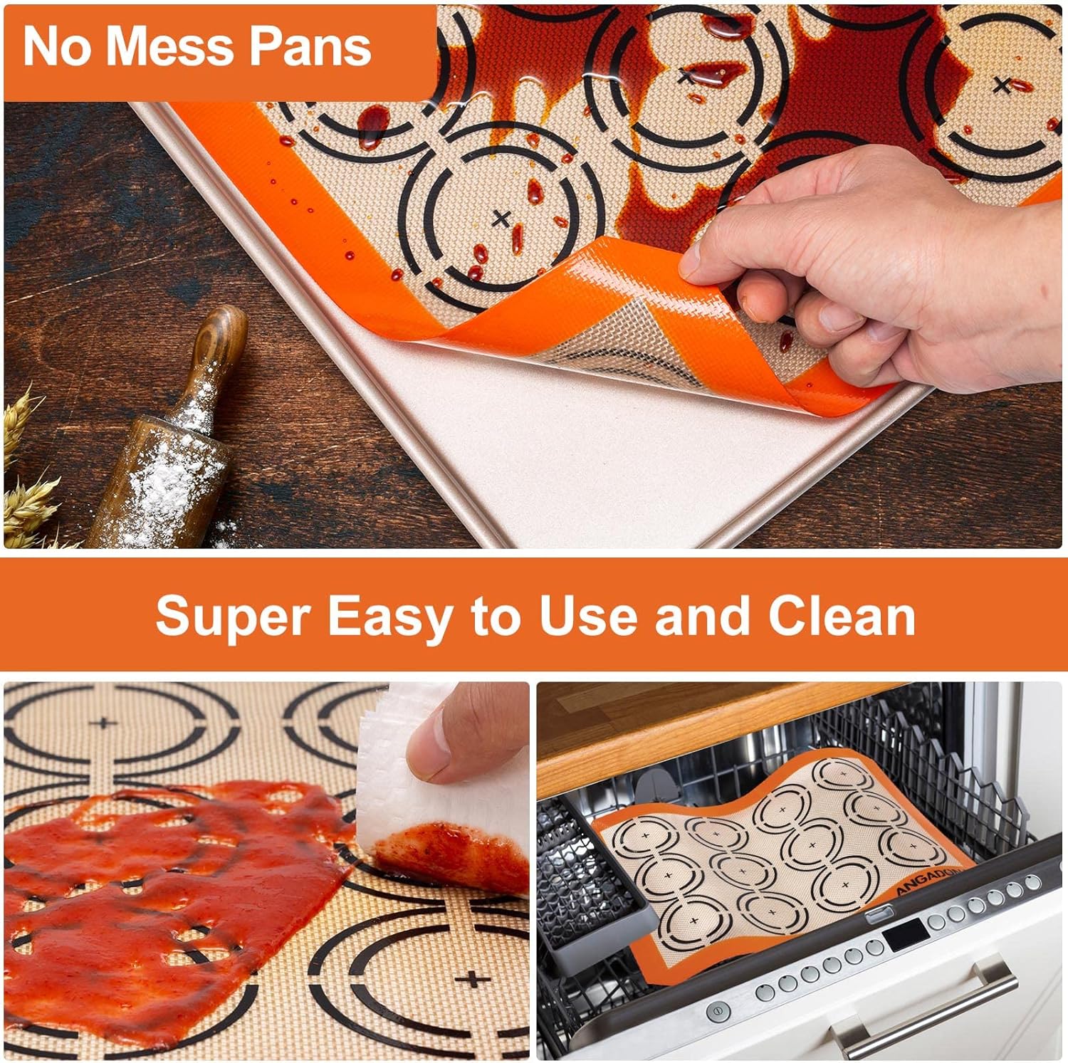 - 【NON-STICK & EASY TO CLEAN】-- Angadona Baking mats silicone for baking sheets are no stick surface for all foods, Easy clean by hand or dishwasher(top rack only)