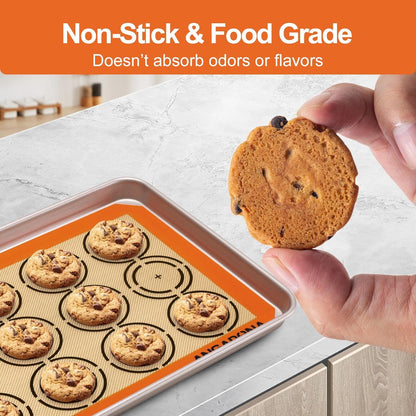 Silicone Baking Mat Sheets Set, Easy Clean &Non-Stick Food Grade Reusable Baking Mat, 2 Half Sheet Cookie Baking Mats Silicone for Oven, Make Macarons, Cookies and Pastry Mat