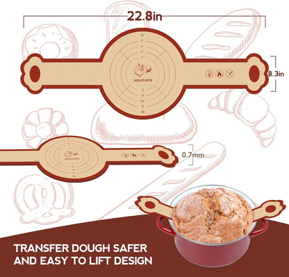 - [STURDY AND DURABLE]- Our silicone baking mat is made of food-grade silicone and reinforced with fiberglass, which will not tear or damage easily. Plus, they're safe to use in temperatures ranging from -40°F to 446°F, and distribute heat evenly to prevent your bread from burning.