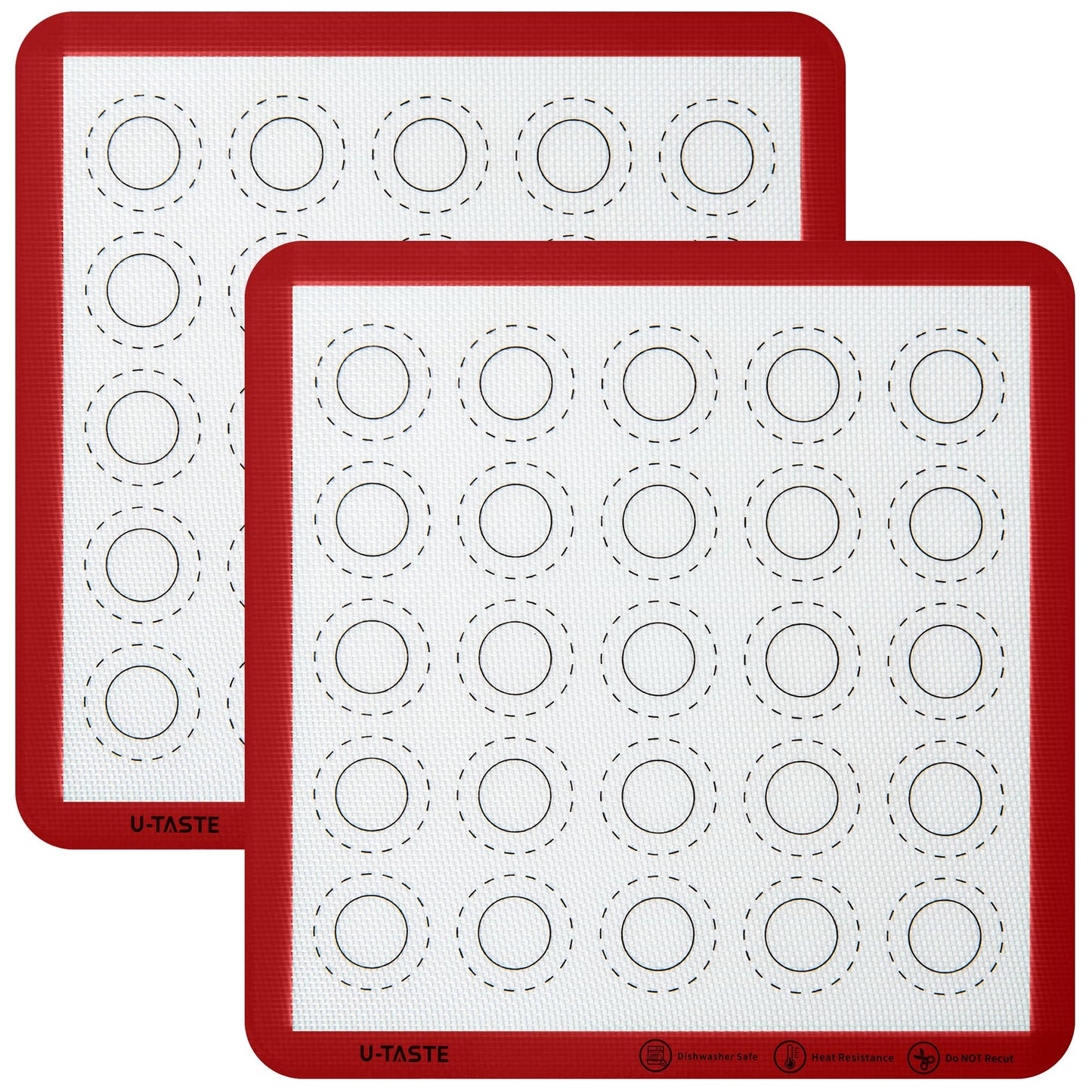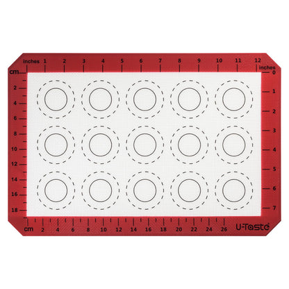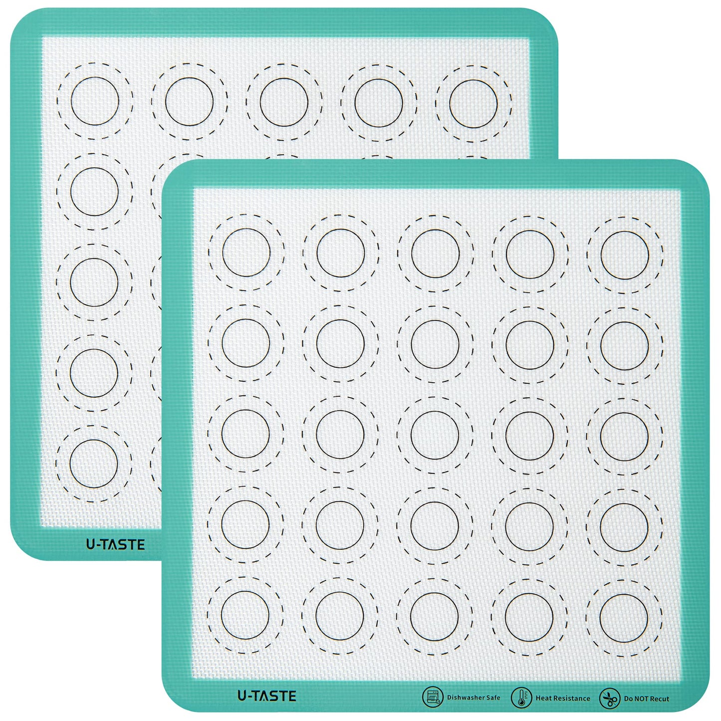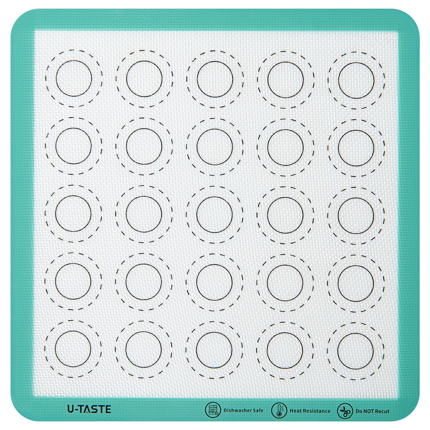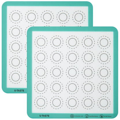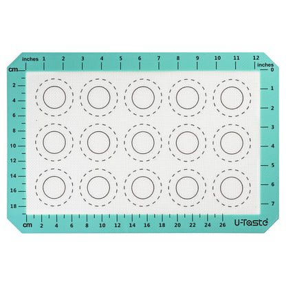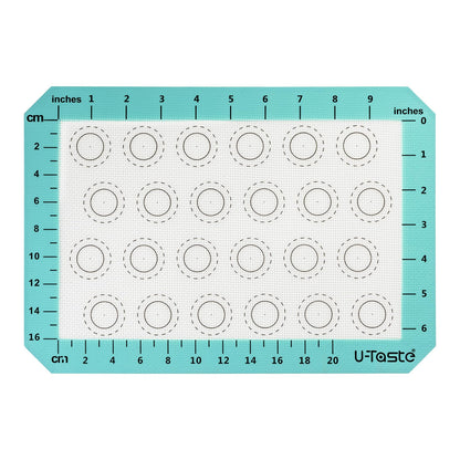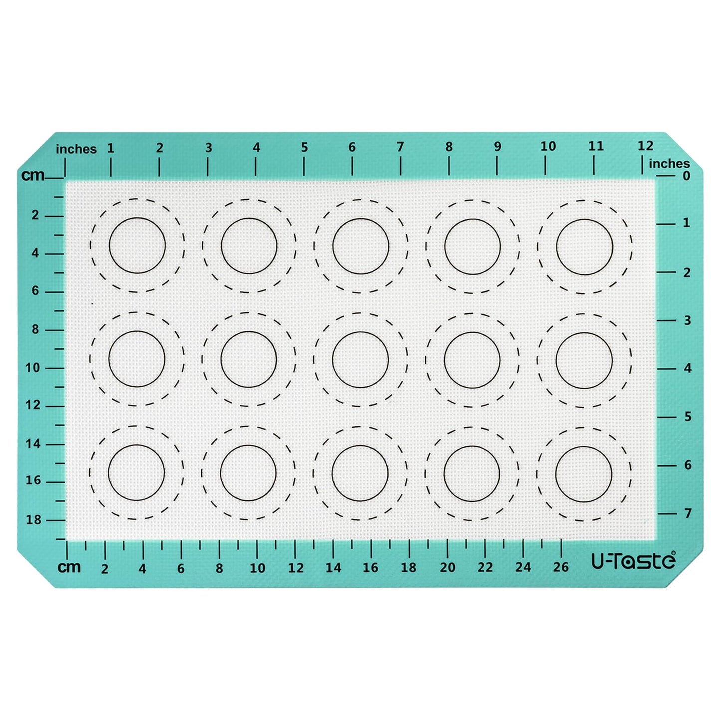 U-Taste 446ºF Heat Resistant Macaron Silicone Baking Mat, Non Stick Reusable Cookies Pastry Sheet Liner with Edge Enhancement Circle Measurement (Half/Jelly Roll/Quarter Sheets Size, Aqua Sky)
