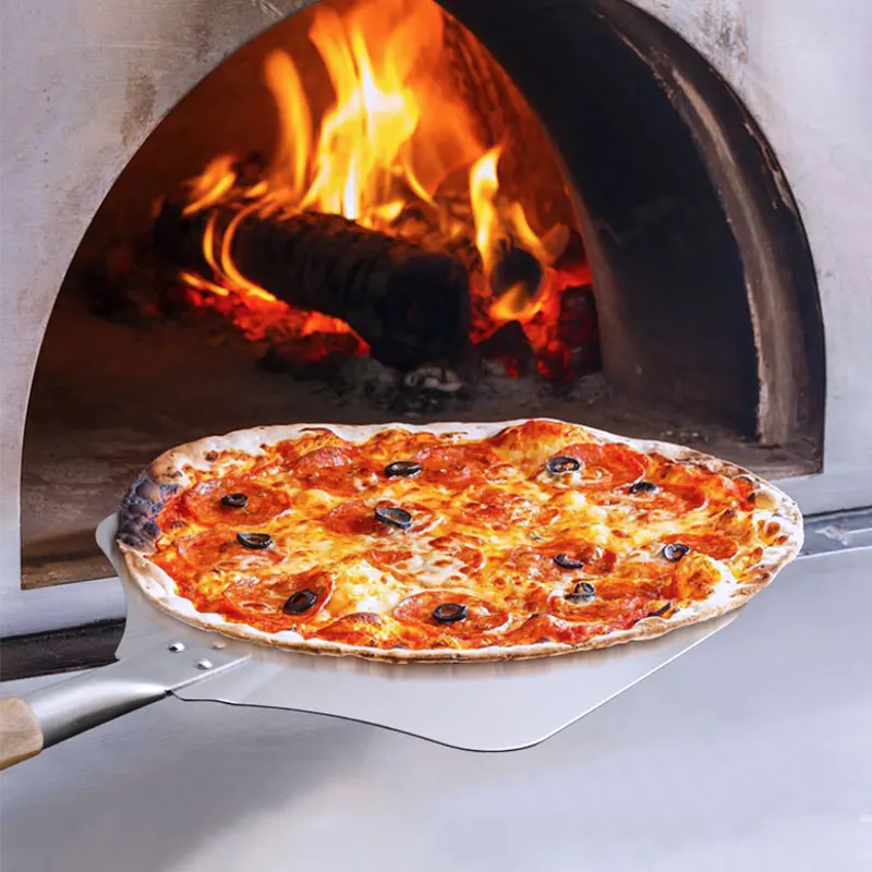 Дубова ручка забезпечує зручне та надійне захоплення, що дозволяє з легкістю маневрувати шпателем. Поєднання нержавіючої сталі та алюмінію забезпечує легкість і міцність лопатки, що робить її міцним і довговічним доповненням до ваших кухонних гаджетів. Якщо ви кладете піцу в духовку на дровах або піднімаєте свіжоспечений хліб, ця лопатка забезпечує стабільність і контроль, які вам потрібні.