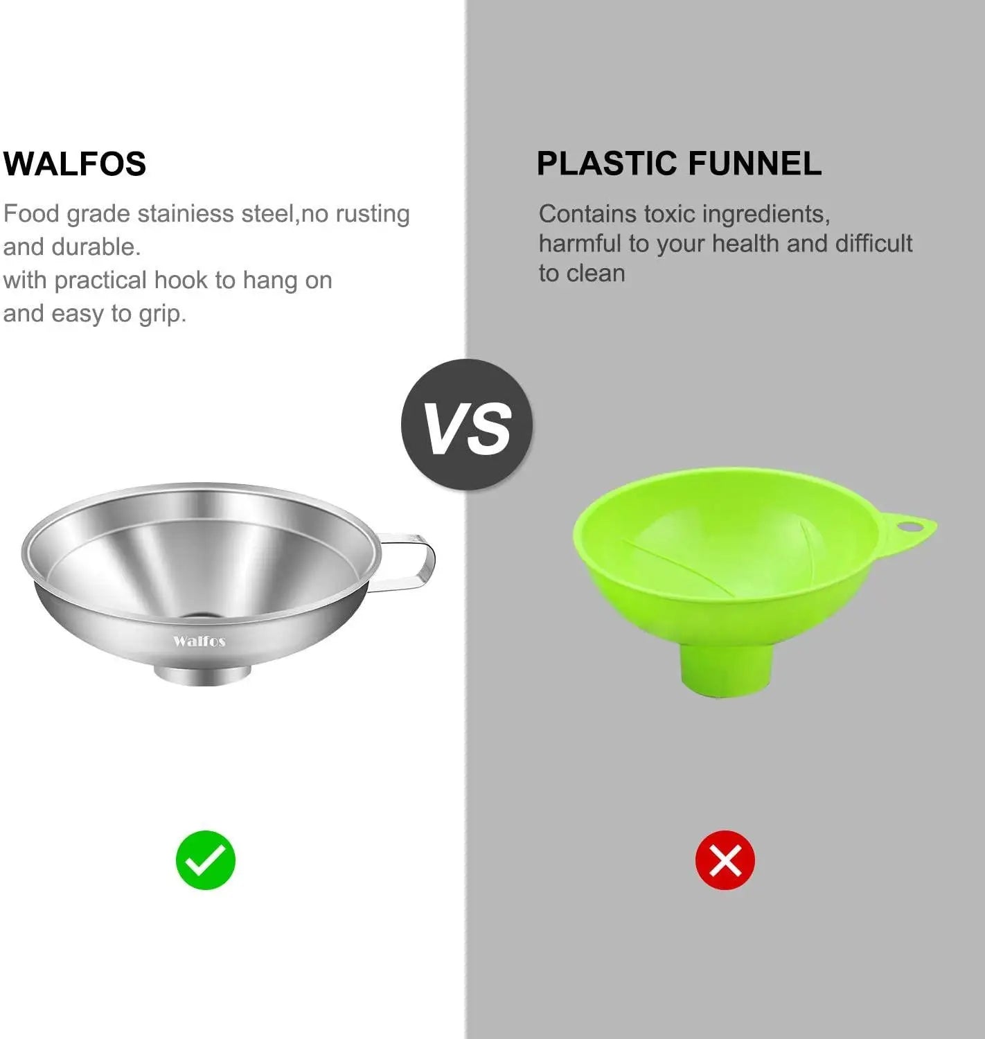 Воронка з високоякісної нержавіючої сталі WALFOS Воронка з широким горлом для консервування олії, вина, приготування їжі, інструмент для аксесуарів для саду