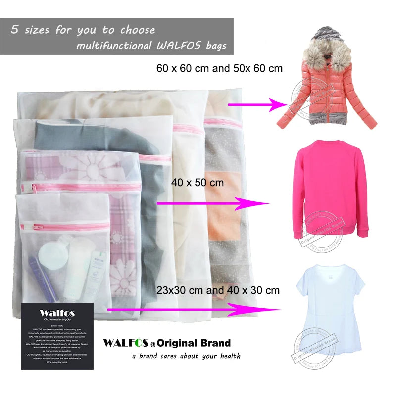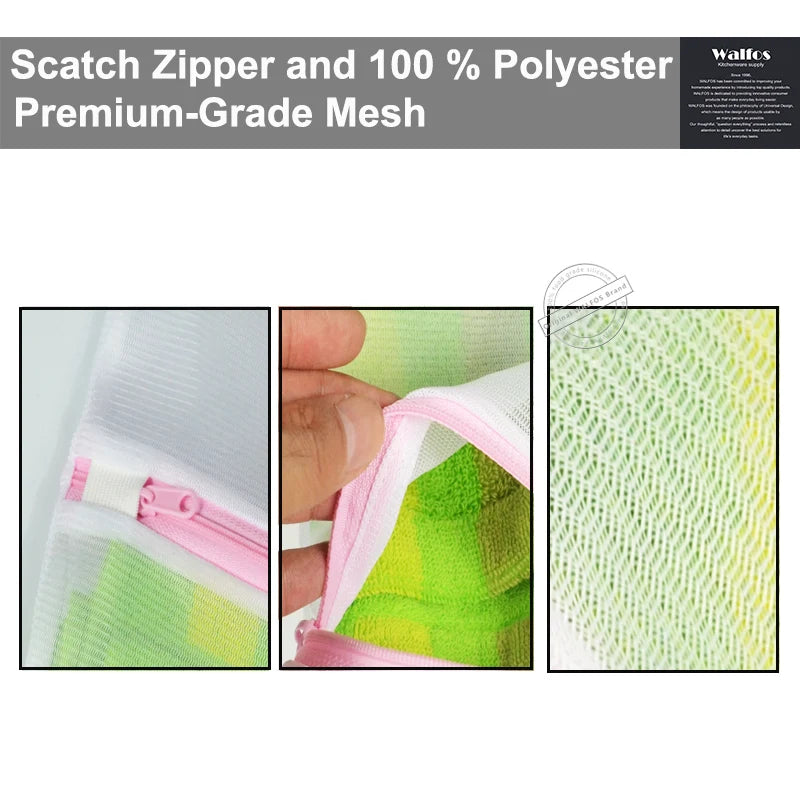 Мішки для прання WALFOS призначені для захисту та організації ваших делікатних речей під час прання. Ці сітчасті сумки ідеально підходять для бюстгальтерів, нижньої білизни та іншого делікатного одягу, який потребує особливого догляду. Виготовлені з міцної поліефірної тканини, ці мішки для білизни гарантують, що ваші речі будуть у безпеці від пошкоджень, сплутування або розтягування в пральній машині. Плоский дизайн забезпечує легке зберігання та організацію, що робить ці сумки обов’язковими для кожної родини.