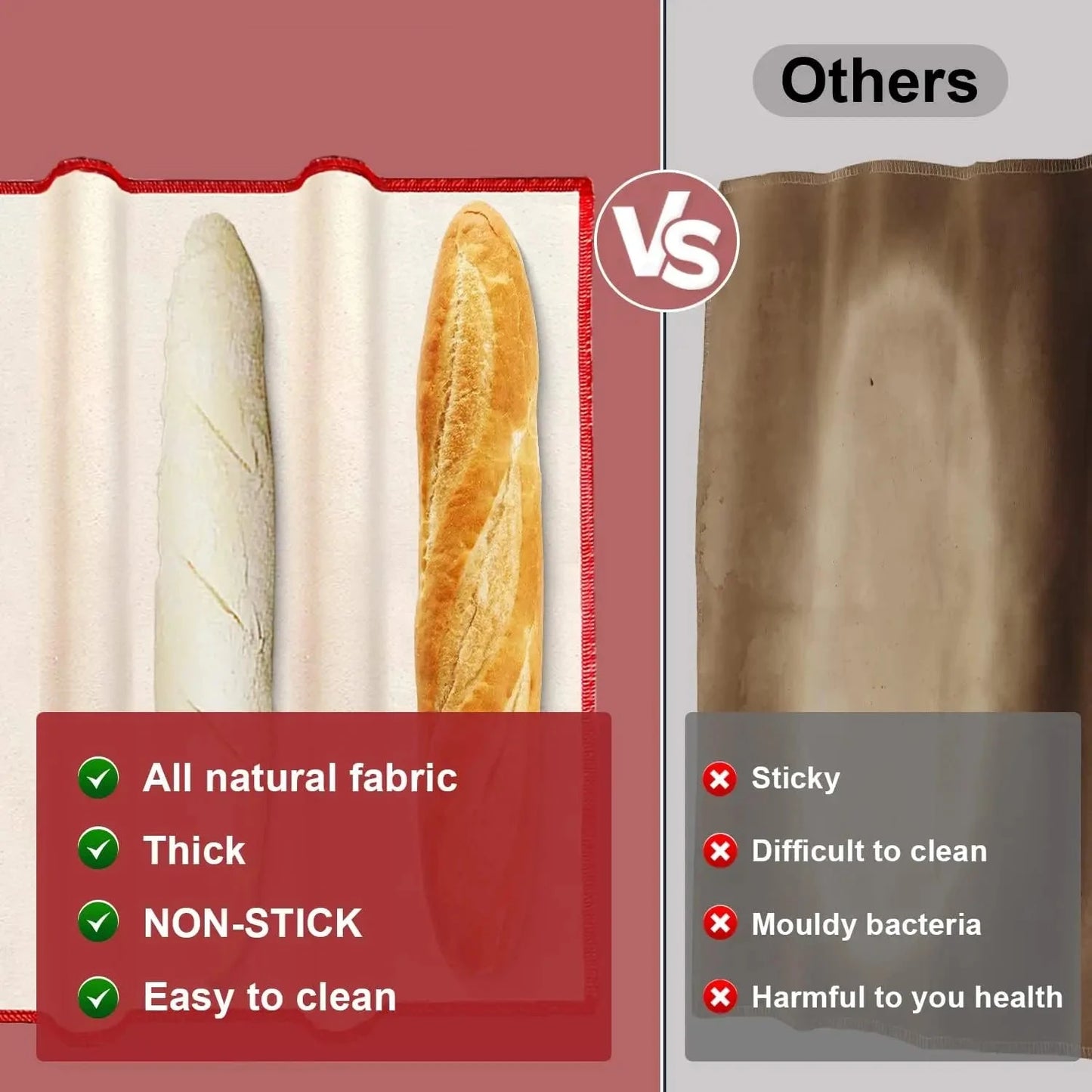 Незалежно від того, чи ви печете класичні французькі багети чи ситні хлібці чіабатта, протектор для хліба WALFOS адаптується до різних типів хліба та технологій випікання. Його великі розміри та товста тканина забезпечують достатнє покриття та підтримку, що робить його необхідним інструментом для досягнення якості хлібобулочних виробів у домашніх умовах. Ця тканина, яку легко чистити та доглядати, практична та довговічна, гарантує, що вона залишатиметься основним продуктом на вашій кухні довгі роки.